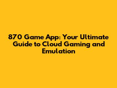 870 Game App: Cloud Gaming & Emulator Guide