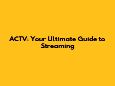 ACTV: Ultimate Guide To ACTV Streaming