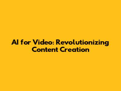AI For Video: Revolutionizing Content Creation