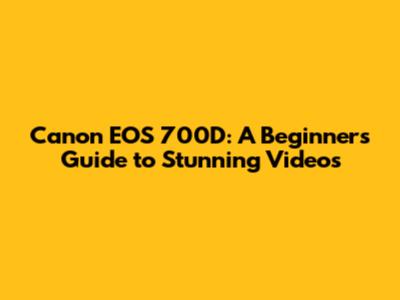 Canon EOS 700D: A Beginner's Guide To Stunning Videos