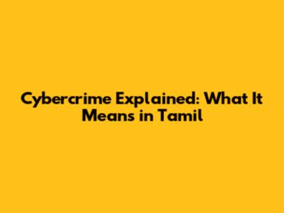 Cybercrime Explained: What It Means In Tamil