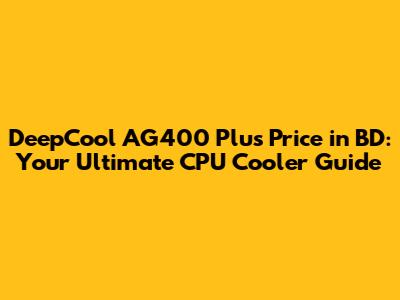 DeepCool AG400 Plus Price In BD: Your Ultimate CPU Cooler Guide