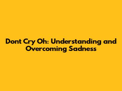 Don't Cry Oh: Understanding And Overcoming Sadness