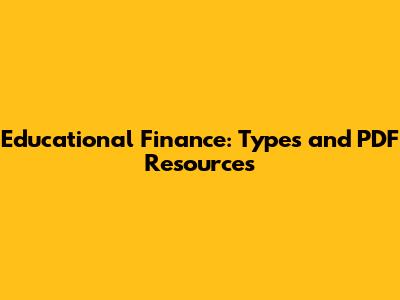 Educational Finance: Types And PDF Resources
