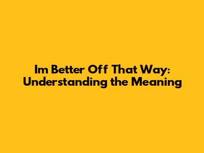 So, where might you hear someone utter these words? Let's break down some common scenarios to understand the meaning of "I'm better off that way". Imagine a friend who decides to leave a high-pressure job to pursue a more fulfilling, albeit less lucrative, career. They might say, "I know I'm not making as much money, but I'm better off this way. My stress levels are down, and I actually enjoy my work now." In this case, it signifies a conscious decision to prioritize well-being and happiness over financial gain. They've weighed the pros and cons and found that a less stressful environment is more valuable to them, even if it means sacrificing a higher salary. It's a powerful statement about prioritizing personal fulfillment over societal expectations of success. They are essentially saying that their mental and emotional health is more important than climbing the corporate ladder. The phrase also implies a sense of self-awareness, as they have recognized their own limits and preferences and made a choice that aligns with their individual needs. It's a testament to their ability to prioritize their own well-being and make decisions that support their long-term happiness and fulfillment. In another scenario, consider someone who chooses to remain single rather than settle for a mediocre relationship. They might explain, "I'm better off that way. I value my independence and haven't found someone I connect with on a deep level." Here, the phrase emphasizes the importance of personal freedom and the refusal to compromise on core values. This person isn't willing to sacrifice their autonomy or settle for a relationship that doesn't meet their emotional needs. They'd rather be single and content than be in a relationship that leaves them feeling unfulfilled or stifled. It's a bold declaration of self-worth and a refusal to settle for less than they deserve. The phrase also reflects a deep understanding of their own needs and desires in a relationship. They know what they're looking for and are unwilling to compromise on those core values. It's a sign of maturity and self-awareness, as they prioritize their own happiness and well-being over societal pressure to be in a relationship. Furthermore, imagine a student who decides to drop out of a prestigious university to pursue a vocational trade. They might say, "College wasn't for me. I'm better off that way learning a skill I can use right now." In this context, it indicates a realization that the traditional path to success isn't always the right one for everyone. The student has recognized that their interests and aptitudes lie elsewhere and has made a conscious decision to pursue a more practical and hands-on education. It's a rejection of the notion that a four-year degree is the only path to success and a willingness to forge their own path. The phrase also implies a sense of self-discovery, as the student has come to understand their own strengths and weaknesses and has made a decision that aligns with their individual talents and interests. It's a testament to their ability to think critically and make choices that are right for them, even if it means deviating from societal norms. The phrase "I'm better off that way" can also be used in situations where someone has made a difficult decision that has resulted in a positive outcome. For example, someone who has left a toxic relationship might say, "It was hard at first, but I'm better off that way now." In this case, the phrase signifies a sense of relief and gratitude for having made the decision to leave, even though it may have been painful at the time. The person has recognized that the relationship was detrimental to their well-being and has made a conscious effort to prioritize their own health and happiness. It's a testament to their resilience and their ability to overcome adversity. The phrase also implies a sense of self-empowerment, as the person has taken control of their own life and made a decision that has ultimately improved their overall well-being. It's a sign of strength and courage, as they have chosen to prioritize their own happiness over staying in a situation that was harmful to them. These scenarios highlight the diverse ways in which the phrase "I'm better off that way" can be used to express personal preferences, validate choices, and affirm a sense of well-being.