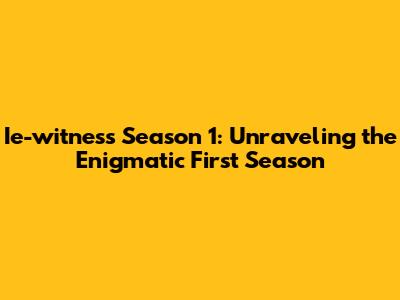 Ie-witness Season 1: A Thrilling Dive Into Mystery