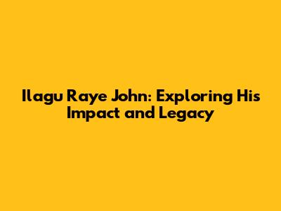 Ilagu Raye John: Exploring His Impact And Legacy