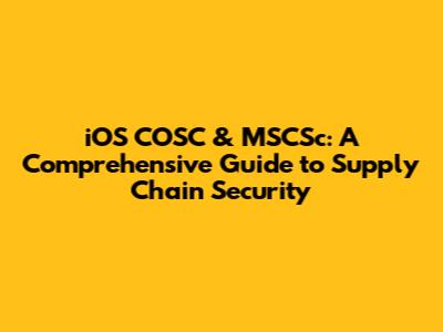 IOS COSC & MSCSc: Supply Chain Security Guide