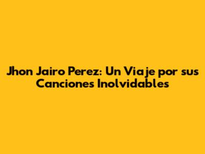 Jhon Jairo Perez: Un Viaje Por Sus Canciones Inolvidables
