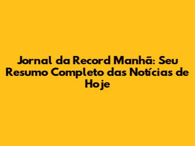 Principais Destaques do Jornal da Record Manhã de Hoje