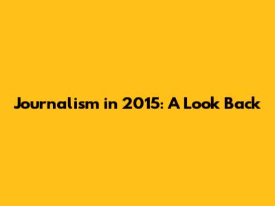 Journalism In 2015: A Look Back