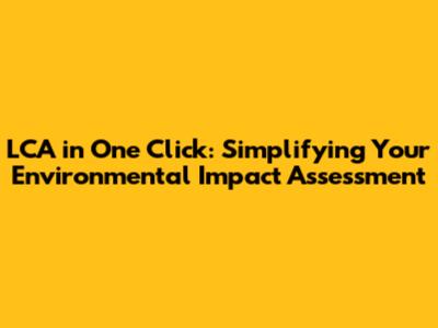 Enter "LCA in One Click": The Game Changer You've Been Waiting For