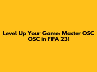 Level Up Your Game: Master OSC OSC In FIFA 23!