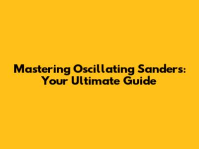 Mastering Oscillating Sanders: Your Ultimate Guide