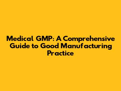 Medical GMP: A Comprehensive Guide