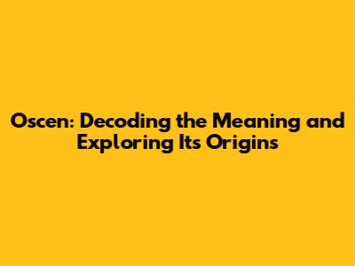 Unpacking the Meaning: What Does Oscen Symbolize?