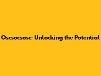 Oscsocsosc: Unlocking The Potential