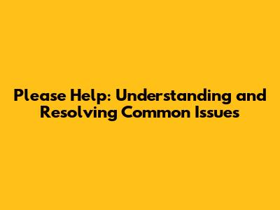 Please Help: Understanding And Resolving Common Issues