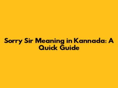 Sorry Sir Meaning In Kannada: A Quick Guide