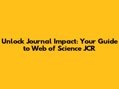 Unlock Journal Impact: Your Guide To Web Of Science JCR