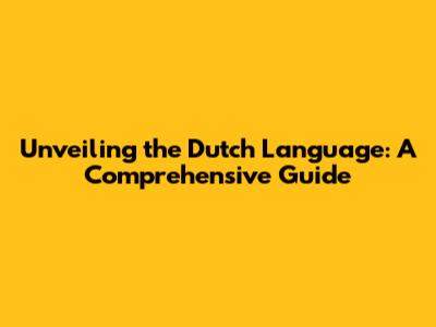 Unveiling The Dutch Language: A Comprehensive Guide