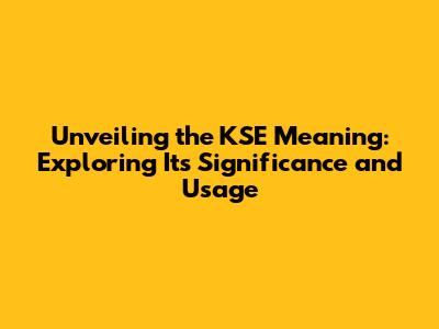 Unveiling The KSE Meaning: Exploring Its Significance And Usage