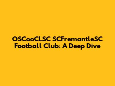 Unveiling The OSCooCLSC SCFremantleSC Football Club