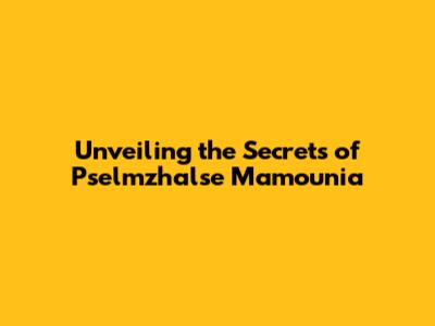 Unveiling The Secrets Of Pselmzhalse Mamounia