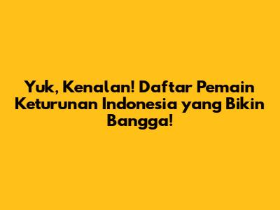 Guys, sepak bola Indonesia memang selalu punya daya tarik tersendiri, ya! Apalagi kalau sudah bicara soal pemain keturunan yang punya kualitas mumpuni. Mereka ini seperti 'mutiara tersembunyi' yang bisa mengangkat performa timnas kita. Nah, kali ini, kita mau 'kepoin' nih, siapa saja sih pemain keturunan Indonesia yang patut kita banggakan? Siapa tahu, salah satunya adalah calon bintang masa depan sepak bola Indonesia! Mari kita bedah satu per satu, mulai dari yang sudah 'moncer' di kancah Eropa, hingga yang masih berjuang menunjukkan kemampuan terbaiknya. Jangan lupa, siapkan cemilan dan minuman favorit kalian, karena kita akan 'ngobrol' seru tentang dunia sepak bola Indonesia!